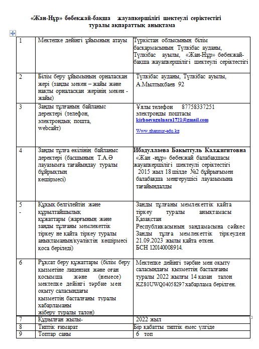 "Жан-нұр" бөбекжай -бақшасы" КММ